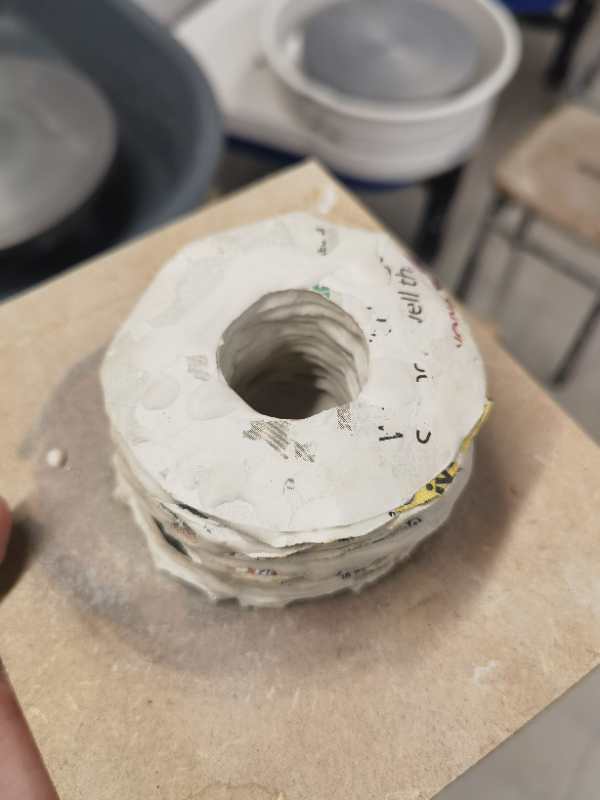 After visiting the Collect 2024, I figured out a new way that was overlaping the newspaper with liquid clay for each pieces. I can change the each piece’s shape gradually so that the object can be curved bottle. The sample test was really successful. However, I also found something need to be noticed. I should ensure every piece dipped with enough liquid clay unless it would be weak and for the top surface I need to cover another piece without liquid clay to keep it clean. And the final object usually will be higher than only newspaper pieces overlapping because there is liquid clay in between pieces.