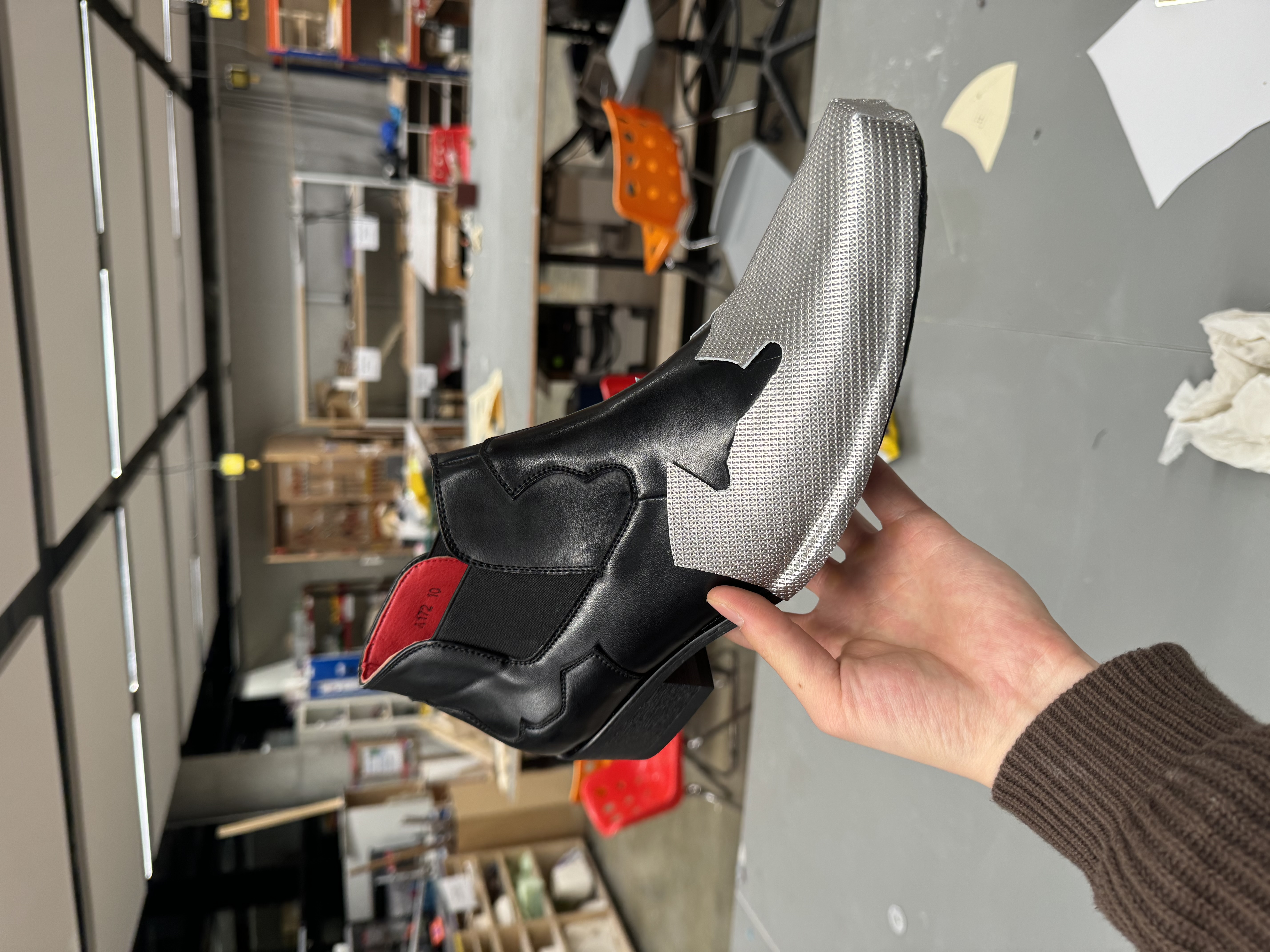 I helped my friend who is in CSM MA fashion design to remake the shoes. He wants the shoes with metal feeling head. Firstly, I used the paper tape to cover the area I want and tore it off to stick it to paper. Then, align the paper tape to draw panel. With the paper panel, I can get the leather shape I want. Finally, glue the leather with shoe with shoe glue and adjust some details.